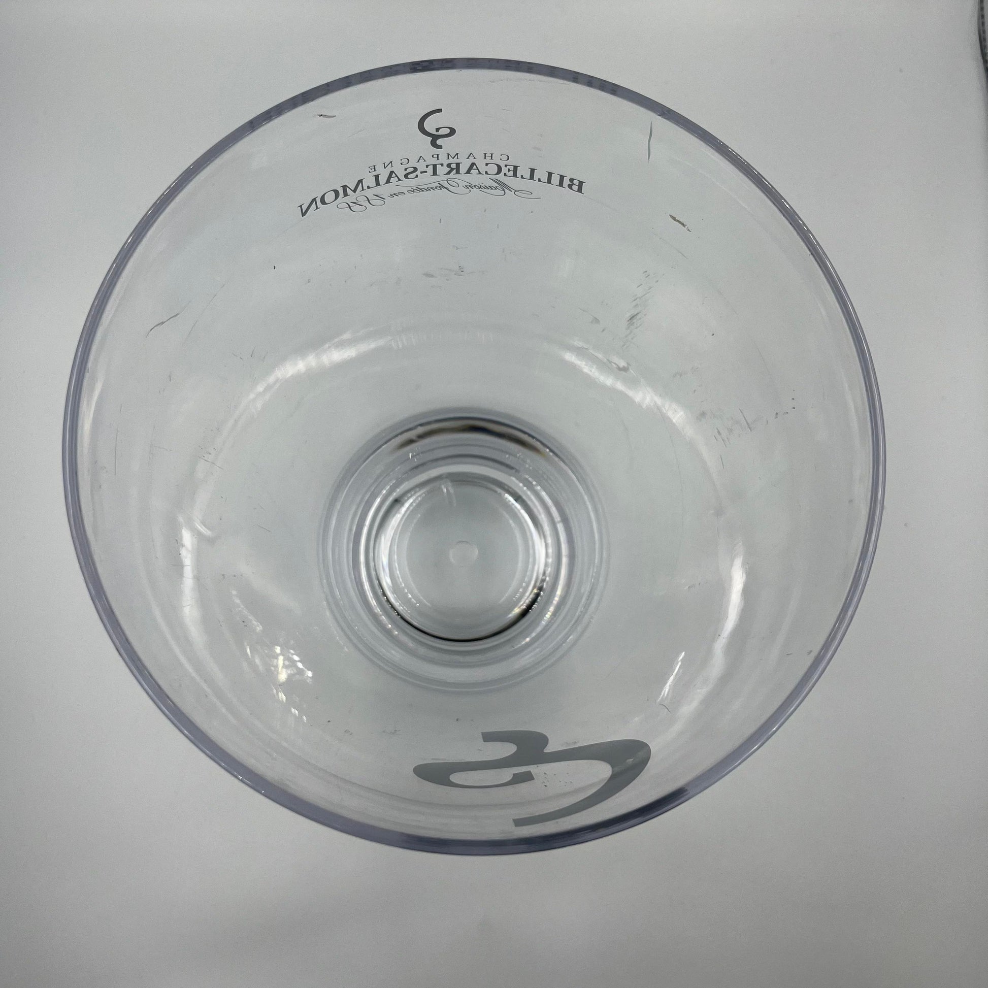 Durchsichtiger Eiskübel mit Billecart-Salmon-Branding. Dies ist eine gute Gelegenheit für Sie, Ihren Gästen zu zeigen, welche Flasche sie trinken, und gleichzeitig das perfekte Zubehör für Ihre Billecart-Salmon-Flasche zu haben. Passend für eine normale Champagnerflasche.